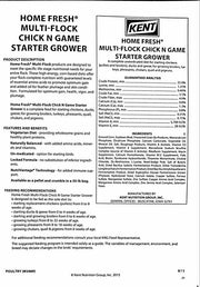 Home Fresh Multi-Flock chick'N Game Starter Grower is a complete feed for starting chicken, ducks, gees; for growing broilers, turkeys, pheasants, quail, chuckars and pigeons.
